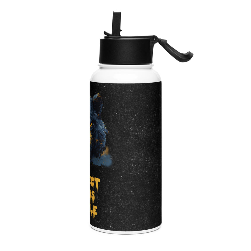 Durable, sleek, and ready for wherever your day takes you, this 32oz (950 ml) stainless steel water bottle with a wide-mouth foldable straw for spill-free sipping and a rotating handle is perfect for staying hydrated all day, while standing up for what matters. Because protecting trans people is always in style. 🏳️⚧️🐾💙