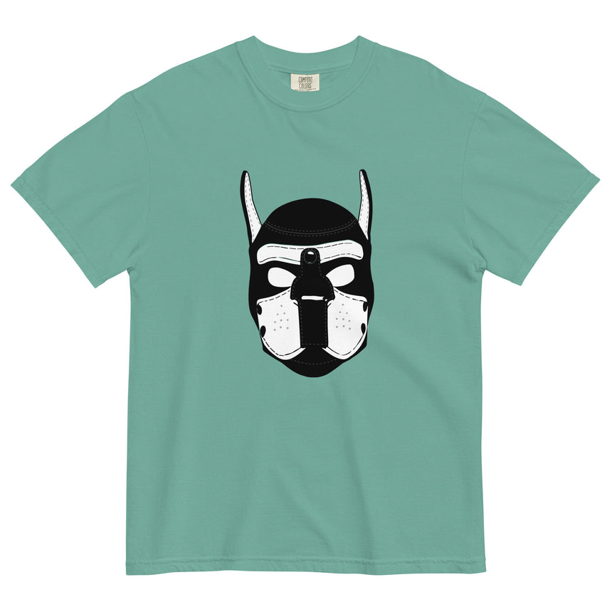 This Puppy Hood T-Shirt features a bold, illustrated graphic of the classic leather pup hood by Auston Bjorkman, founder of Transguy Supply, artist, and designer of the very first Puppy Hood ever made and sold at Mr. S Leather in the late ’90s and early 2000s.