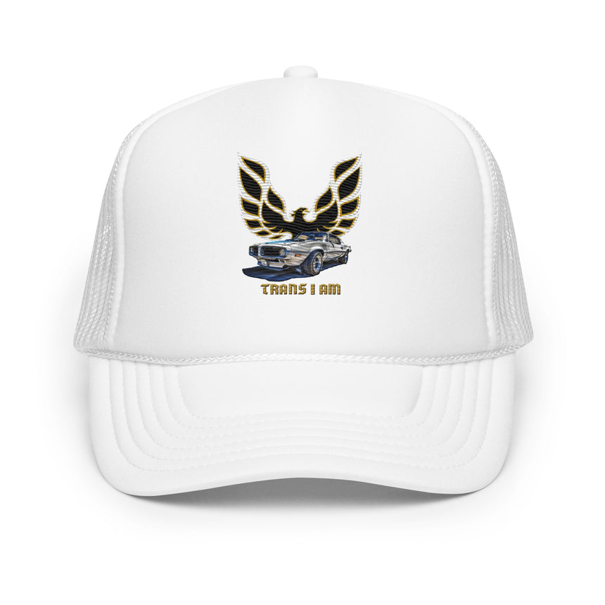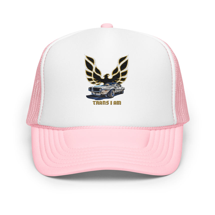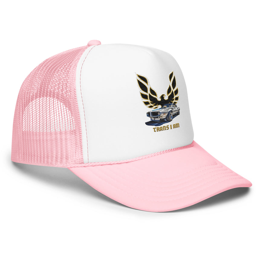 Start your engines and let your inner phoenix soar! This trucker hat takes the iconic Trans Am vibe and gives it a turbocharged dose of trans pride. Featuring the legendary phoenix log with a bold "Trans I Am," it's the perfect mix of retro cool and modern badassery.