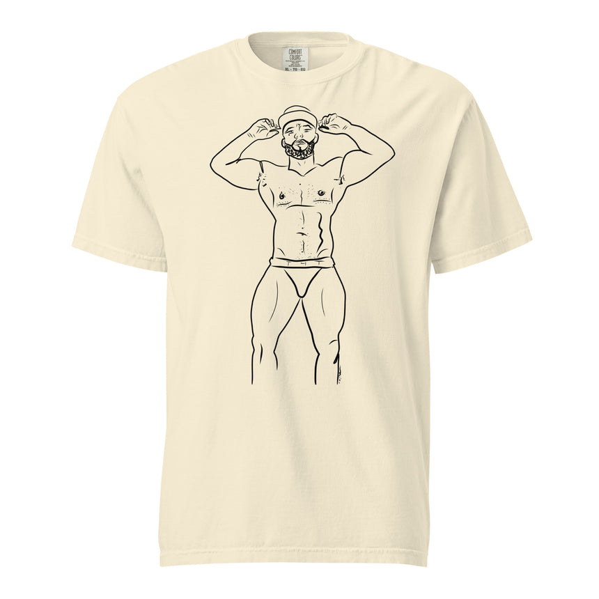 This super-soft 100% Cotton Tee Features an Eye-Catching illustration by Auston Björkman: a muscly, bearded trans man in a T4T Jock serving trans masc realness. Whether this is your body type, your aspirational body type, or you just want to rep T4T love or rare depictions of trans masculine joy, this shirt is for us by us.