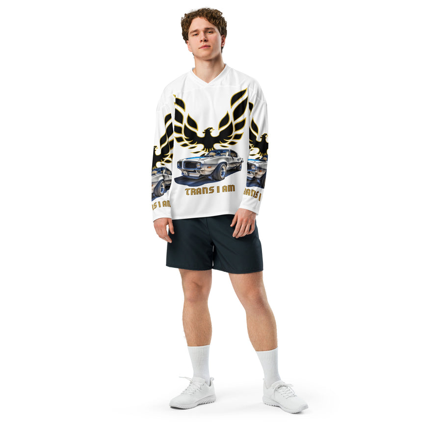 $49.50Gear up with the ultimate trans pride power move: the TRANS I AM JERSEY. Featuring the phoenix, a sleek silver Trans Am, and a classic logo flip gives trans team vibes with a bold twist. Pair them with the matching shorts for a full lewk.