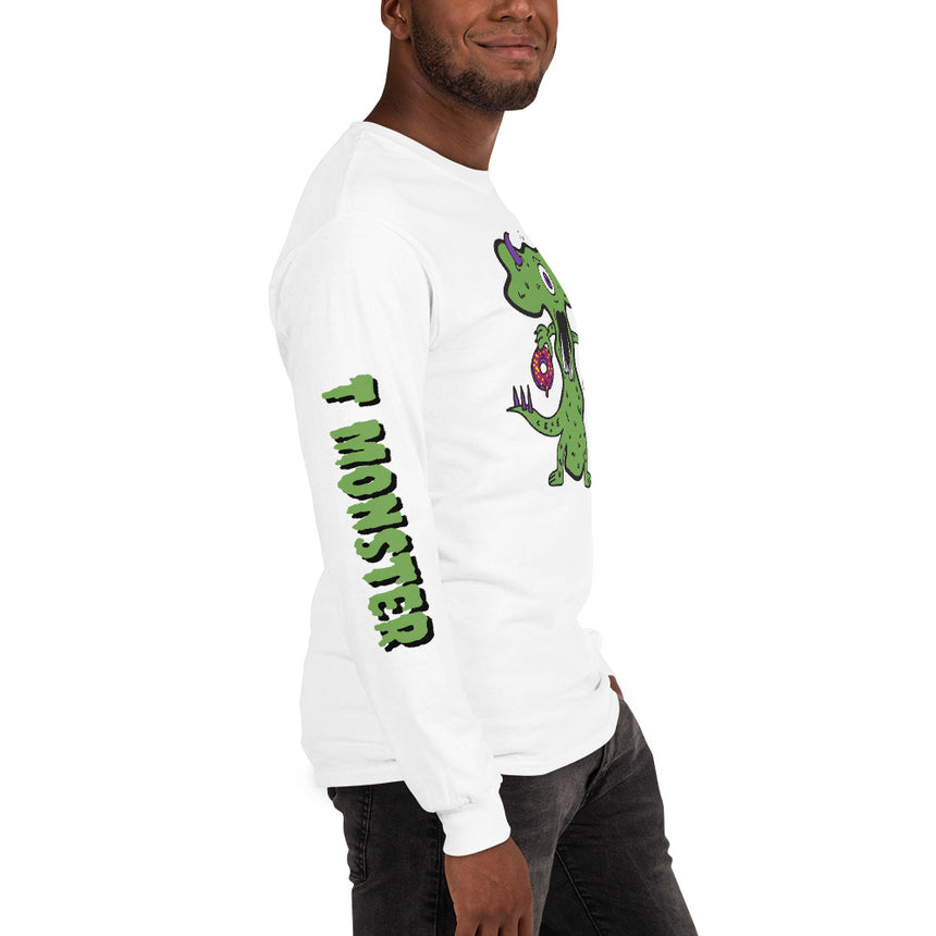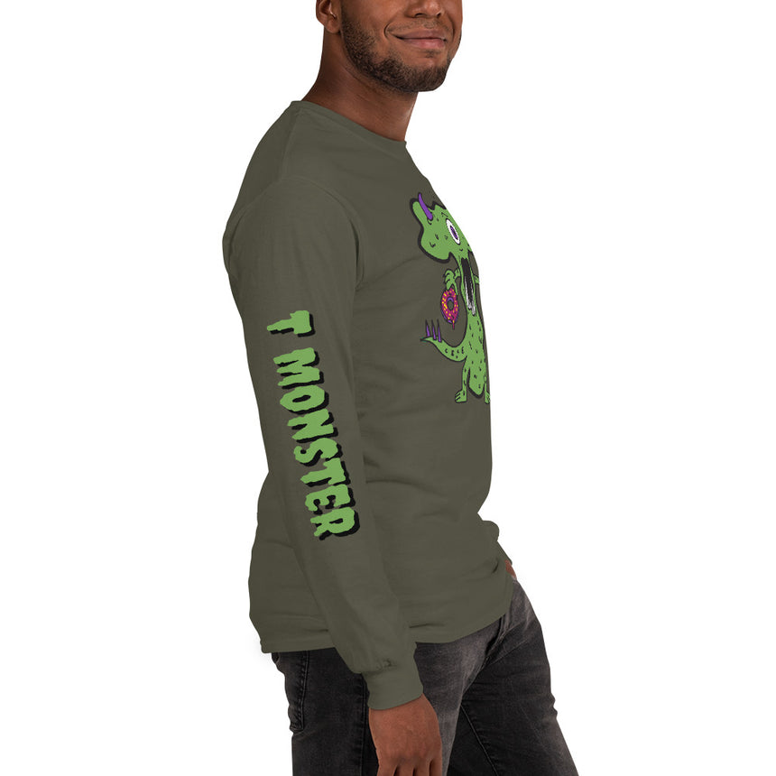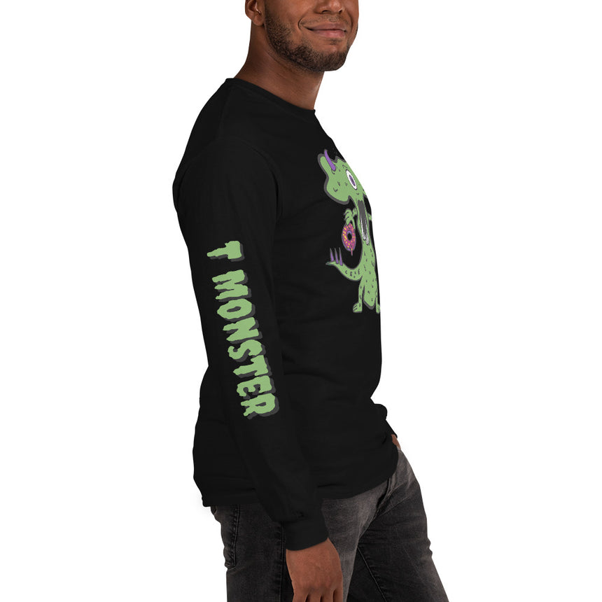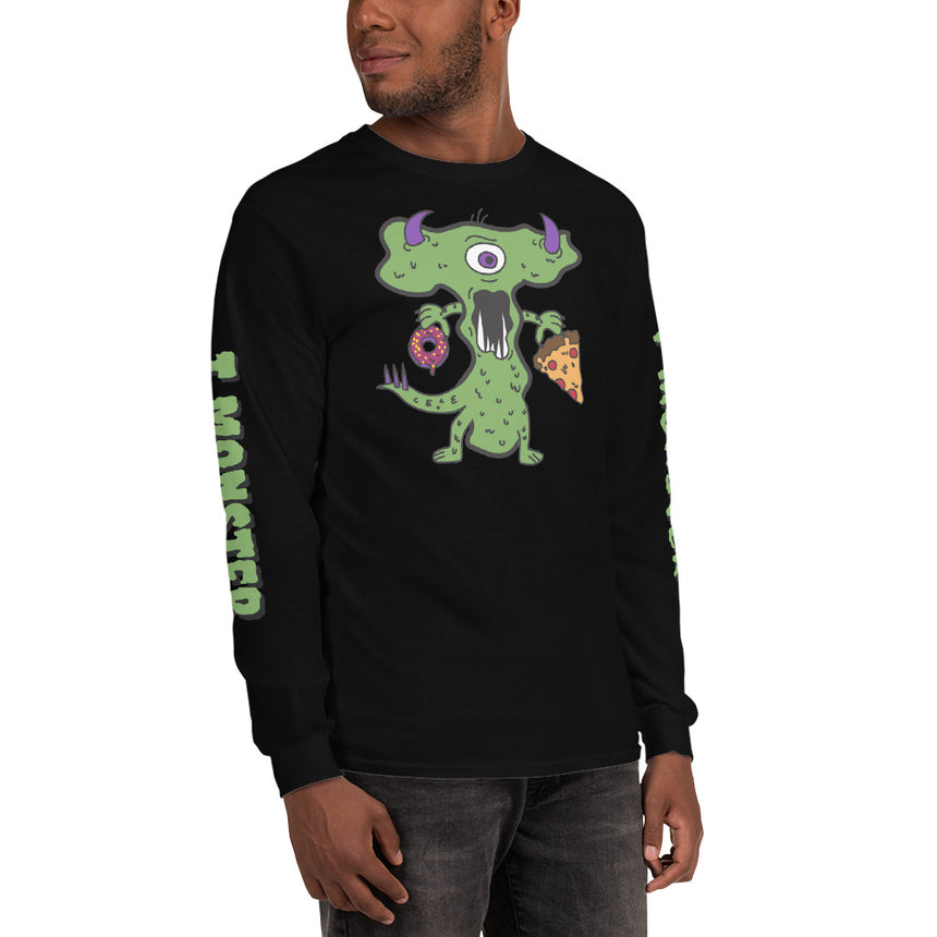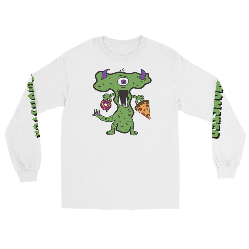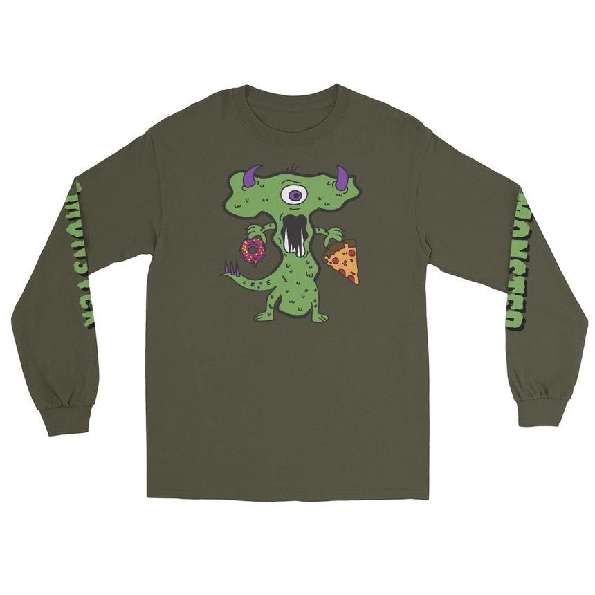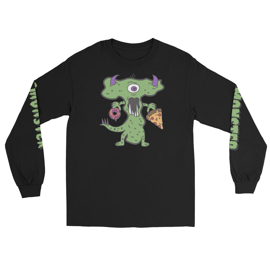 Why... Am... I... So... HUNGRY???? If you've ever found yourself raiding the fridge at 2 AM since starting T, this tee is for you. Featuring T Monster lettering down both sleeves and a lovable T character chomping on pizza and donuts, this graphic captures the post shot munchies life.