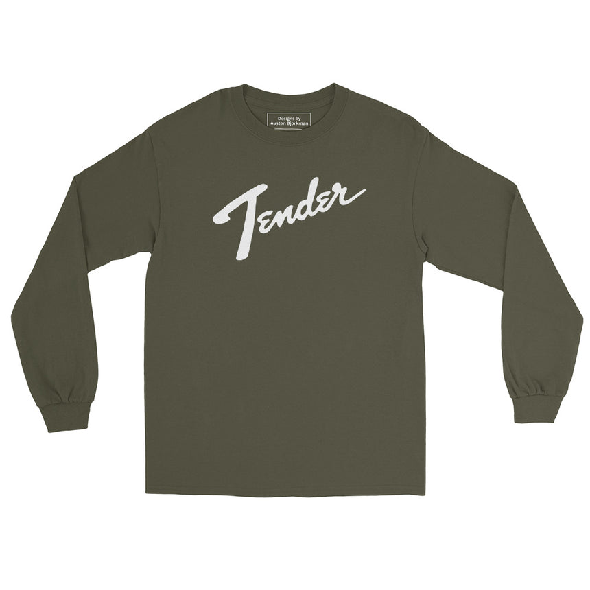 Celebrate the beauty of tenderness with our "Tender" Long Sleeve Tee, inspired by the classic Fender guitar logo. Flip the narrative, softness is a strength and being tender is a powerful way to live.