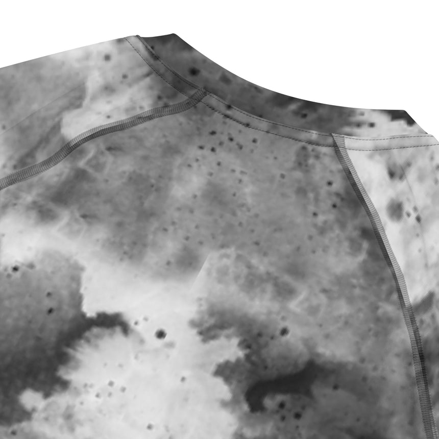 This Storm Print Rash Guard is your armor, all-over black and white lightning pattern, sleek compression fit, and our signature Old English Cake Bandit logo printed bold across the chest.