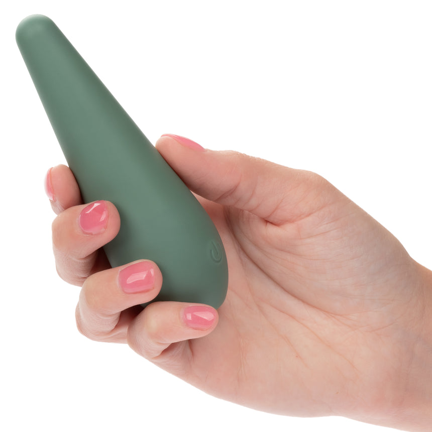 Your new favorite plus one. This sleek non-anatomical handheld vibe delivers just what you need, when you need it, exactly how you like it. Made of ultra smooth liquid silicone, it's super soft to the touch, waterproof and designed for discretion. Throw it in your bag without raising eyebrows.