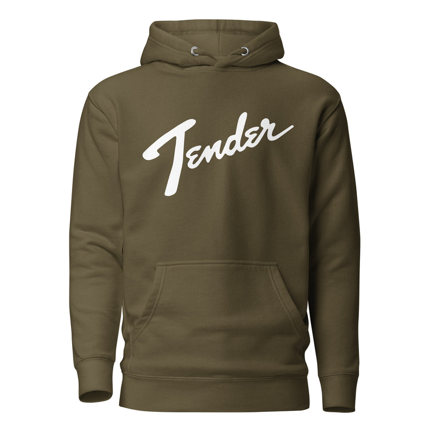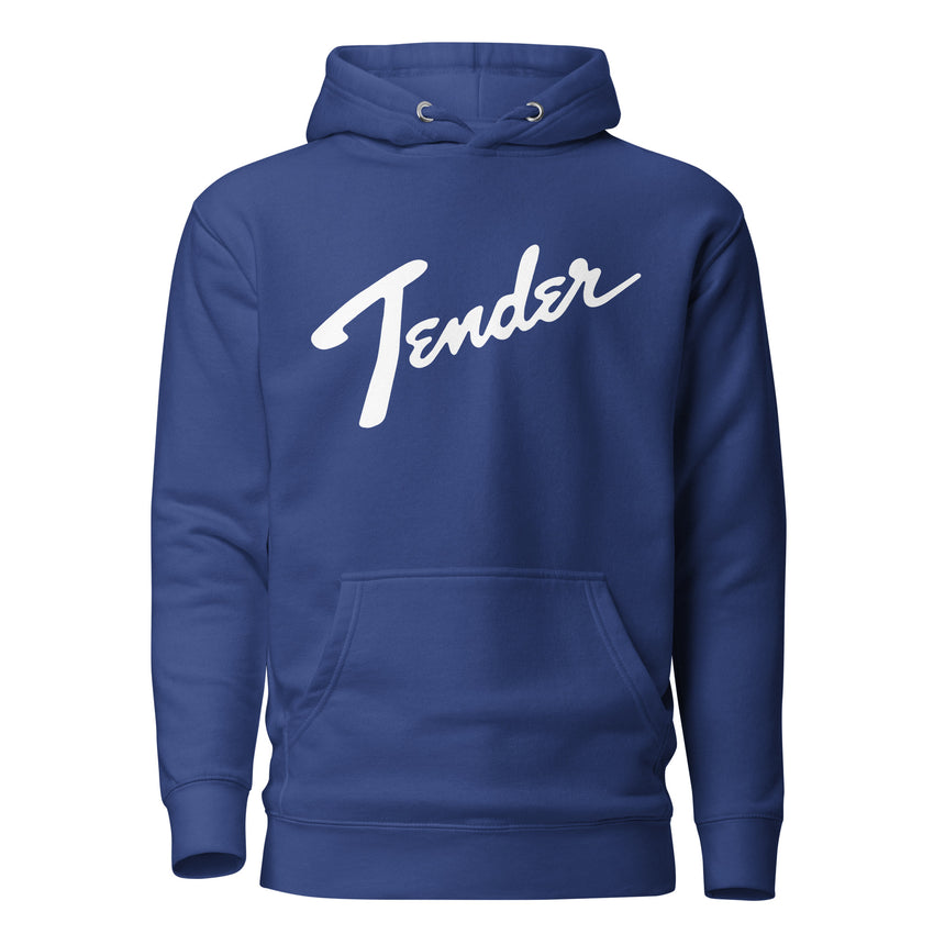Be tender in all things, be especially tender to yourself. This super soft hoodie with a riff off of the classic Fender Guitar Logo will keep you feeling cozy and tender.
