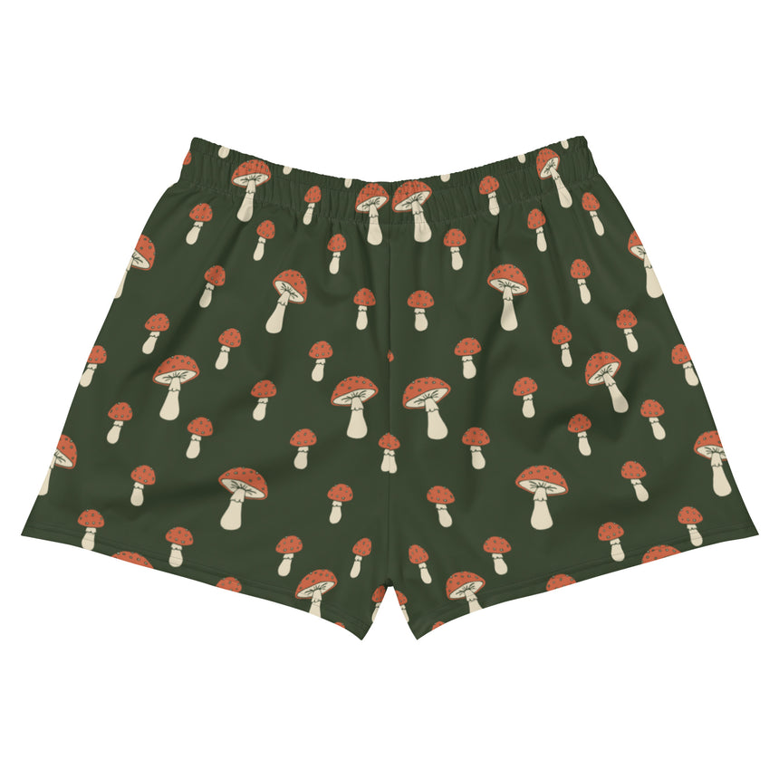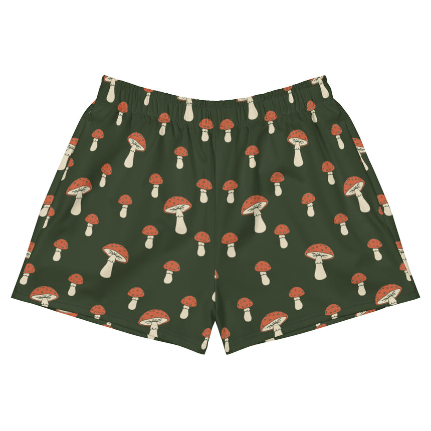 Mushrooms symbolize transformation - and these mushroom print mid-thigh shorts will help you transform your wardrobe! Super comfy, quick drying, gender neutral, they have the versatility of board shorts (without the swim lining), with a vibe that's perfect for swimming, lounging or hitting the gym.
